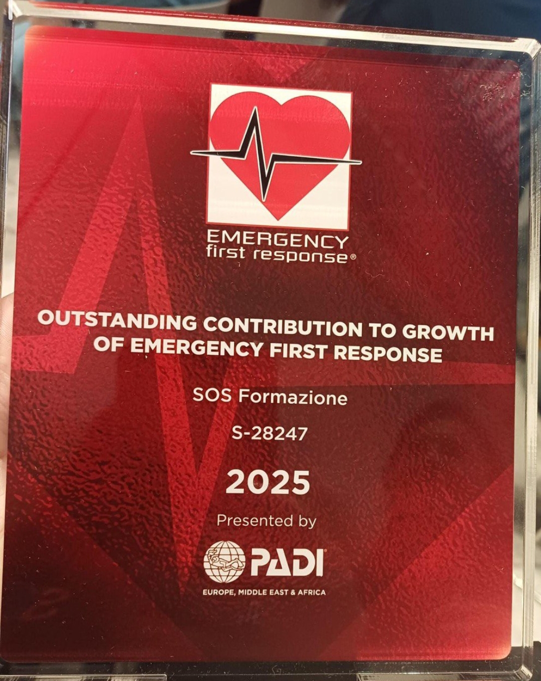 Il centro ha ricevuto il riconoscimento “OUTSTANDING CONTRIBUTION TO GROWTH OF EMERGENCY FIRST RESPONSE” – anno 2025, assegnato per l’eccezionale contributo alla crescita e allo sviluppo della formazione nel Primo Soccorso.