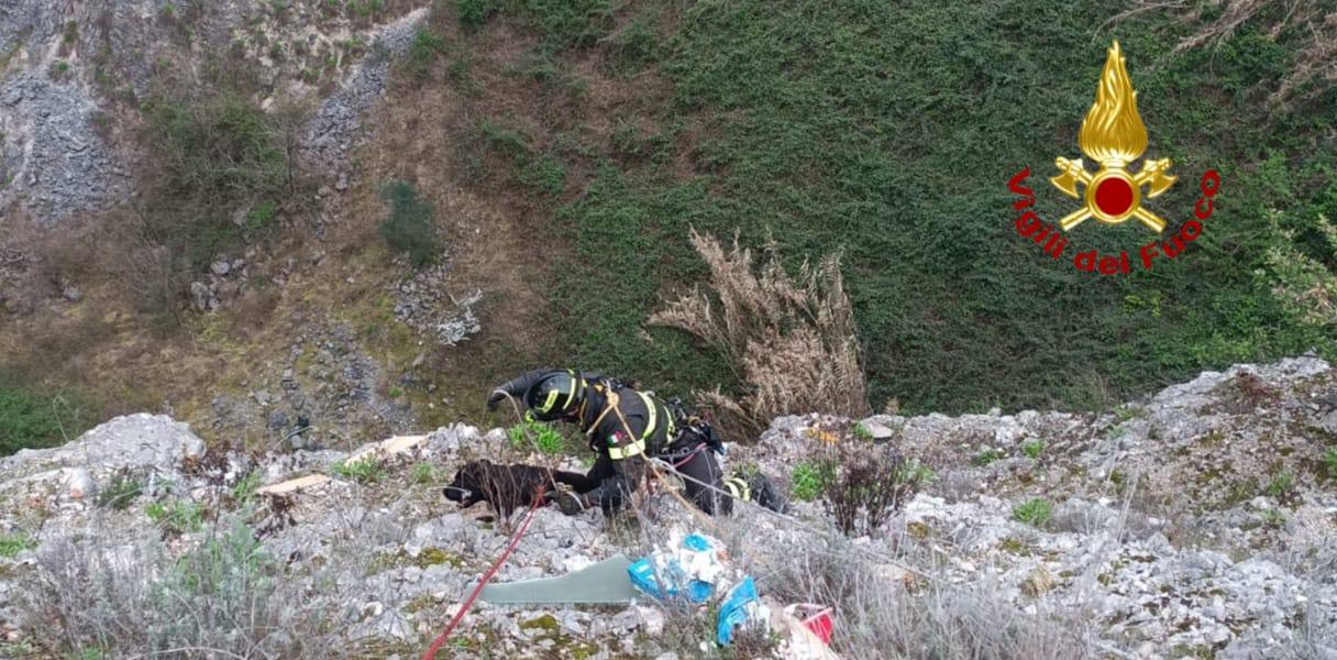 Veroli, Vigili del fuoco di Frosinone recuperano un cane finito in un burrone di una cava